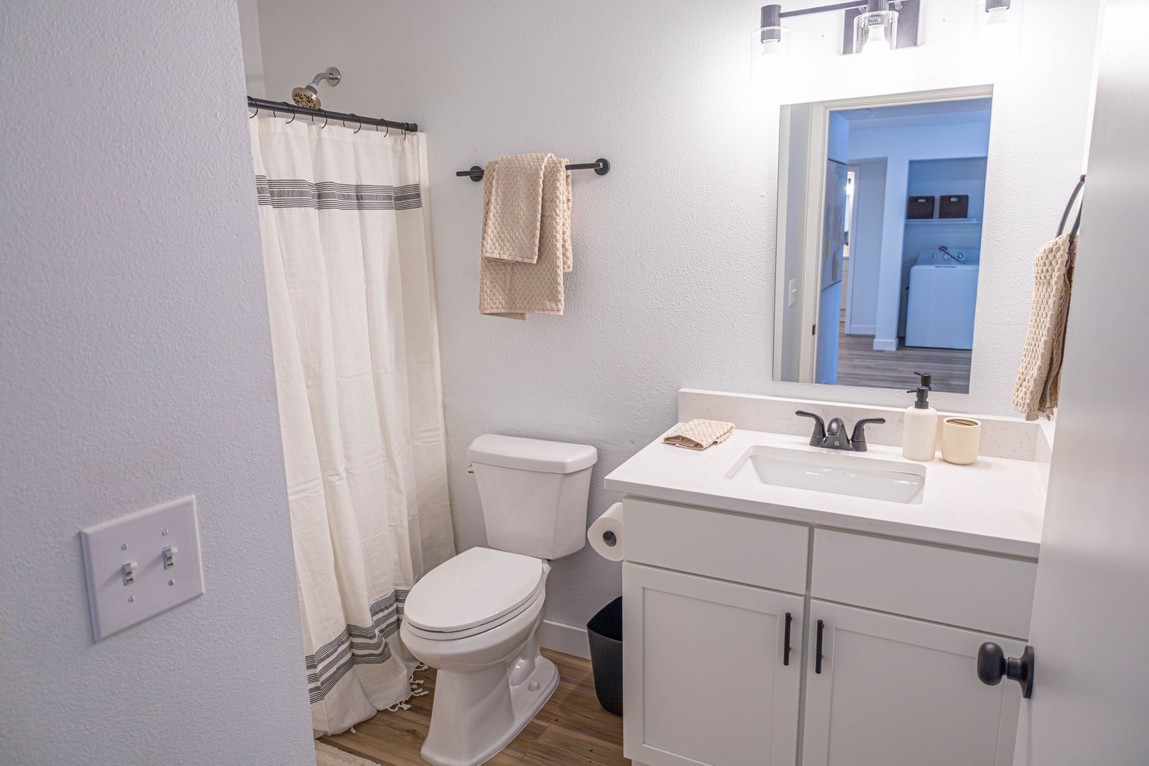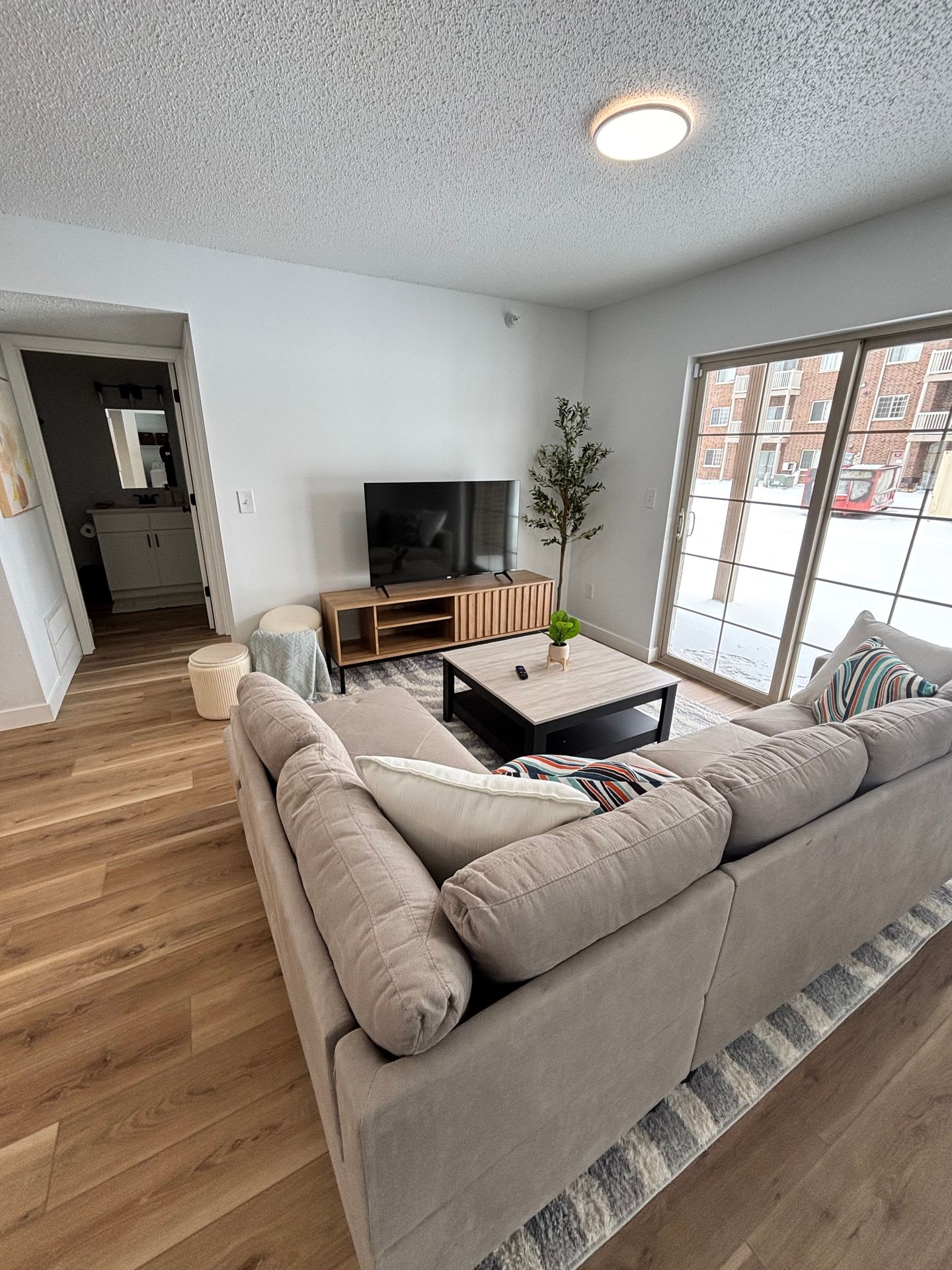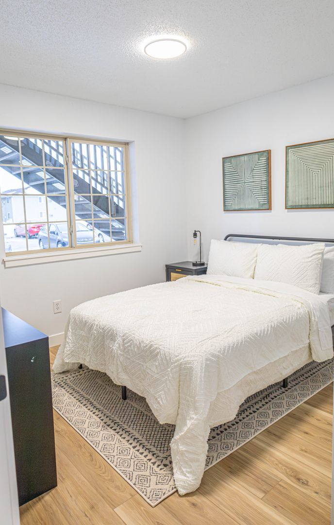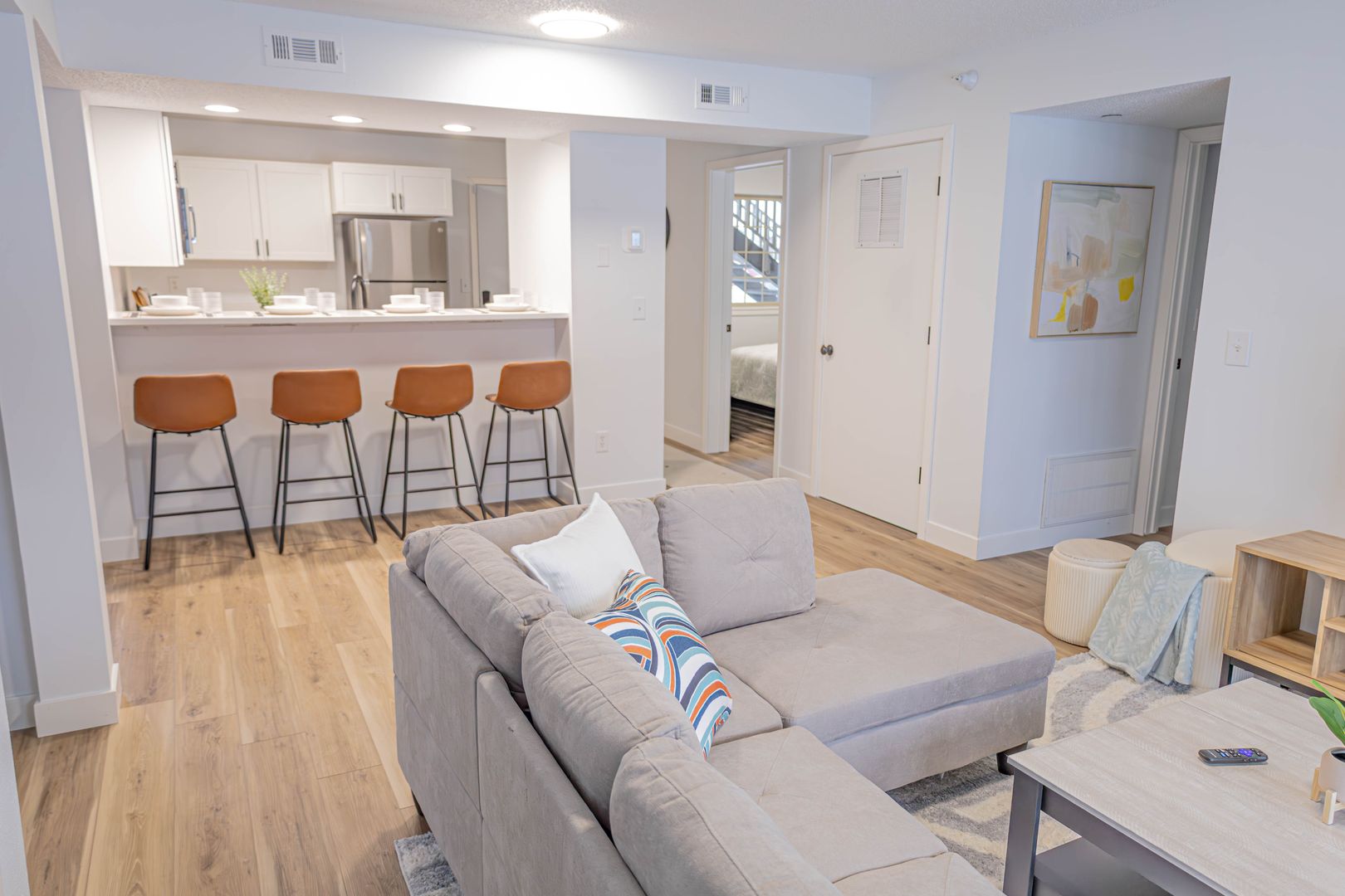 - Spacious Living: The 1,096-square-foot apartment features an open concept living and dining area, creating a bright, welcoming space for hosting friends.